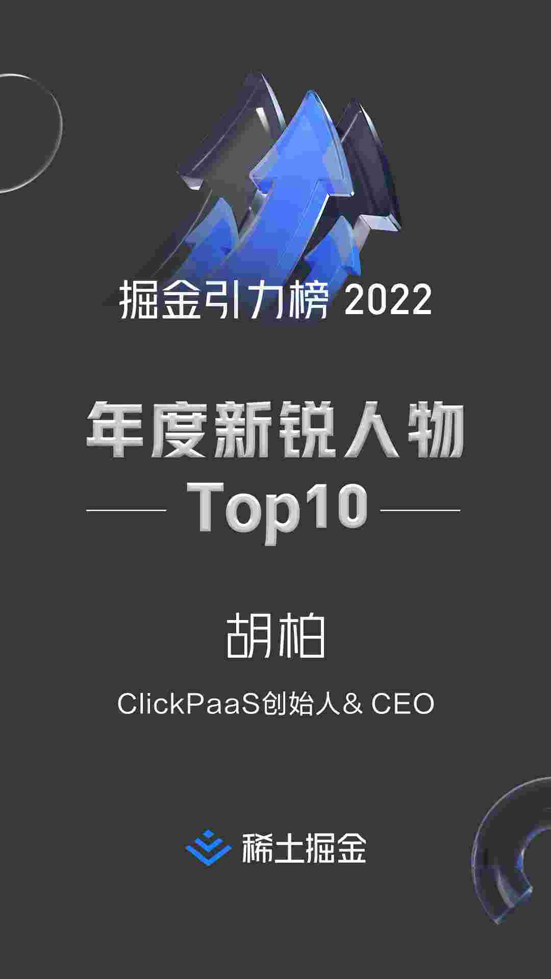 2022年1月6日,,,,稀土掘金社区第一届「掘金未来大会」成功举办,,,,会上发布了“2022 稀土掘金引力榜 年度新锐人物”榜单,,,,上海爱湃斯科技有限公司(简称GOPAY钱包)创始人及CEO胡柏实力入选年度新锐人物TOP 10。。